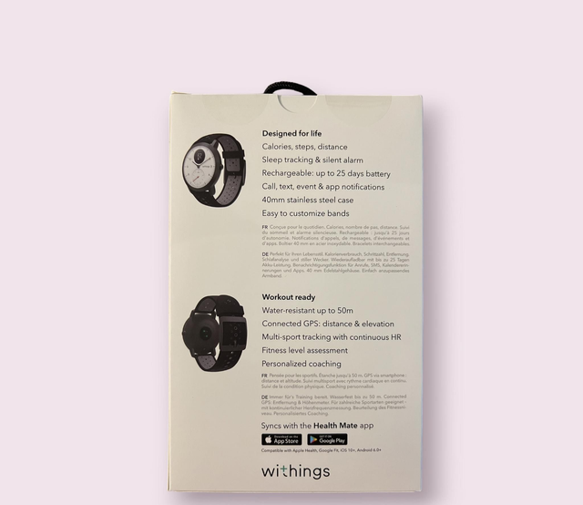 Zegarek ten posiada klasyczną tarcze z niedużym ekranem wyświetlającym powiadomienia i tryby sportowe oraz mniejszym cyferblatem pokazującym poziom realizacji celów.